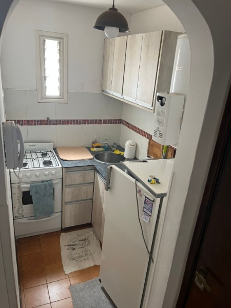 La cocina es independiente, equipada con bajo mesada, cocina eléctrica y estantes de guardado. Baño completo con revestimientos modernos y detalles actuales.